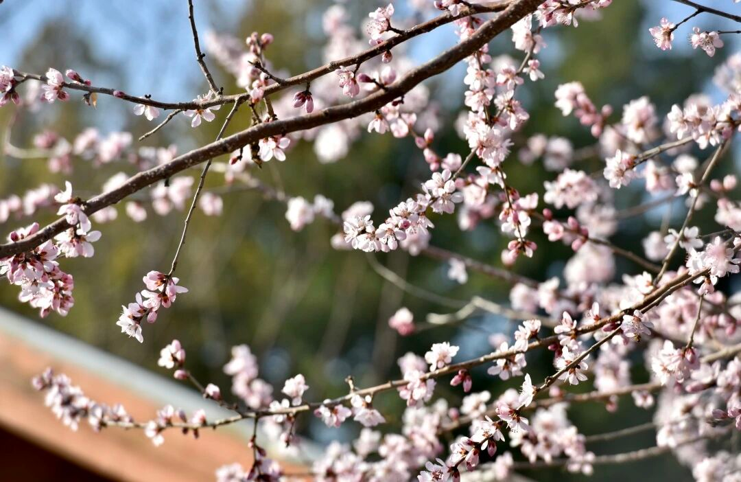 香山公园位于北京西郊地势险峻,苍翠连绵,占地188公顷是一座具有山林特色的皇家园林,景区内主峰香炉峰俗称“鬼见愁”。春日香山,百花将绽,目前,园内蜡梅已进入花的末期,迎春陆续开放,山桃花、梅花含苞待放,粉白的花蕾缀满枝头,在苍翠山林间星星点点。清乾隆皇帝咏香山御制诗中写道“绯桃与绛杏,依岩秀不媚”,说的正是这能在山石中生长的山桃。